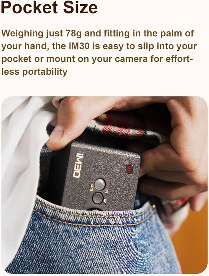 - コンパクトでパワフルなGODOX iM30フラッシュは、ポケットにぴったり収まるサイズでありながら、ガイドナンバー15(ISO 100、メートル)の明るいプロ仕様の照明を提供します。あらゆる状況に対応できる軽量で持ち運びやすいGODOX iM30フラッシュをお探しのフォトグラファーに最適です。