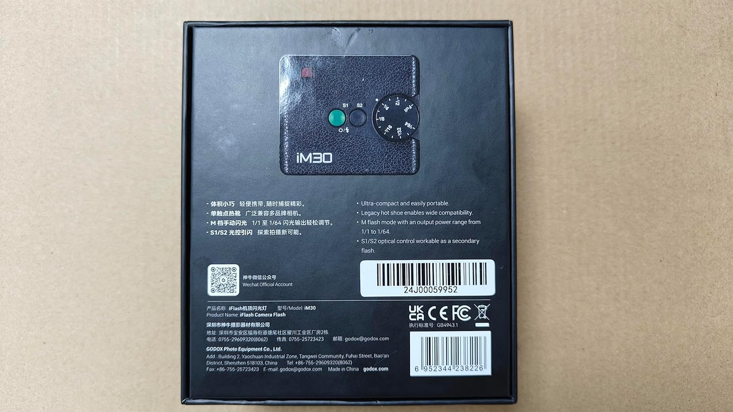 - 自然な光で写真をより美しく。ガイドナンバー15、色温度6500K±200KのGODOX iM30カメラフラッシュは、明るく自然な光を作り出し、写真をより美しく仕上げます。S1/S2光制御により、信頼性の高い高品質なパフォーマンスを実現し、写真撮影に欠かせないポータブルライトです。