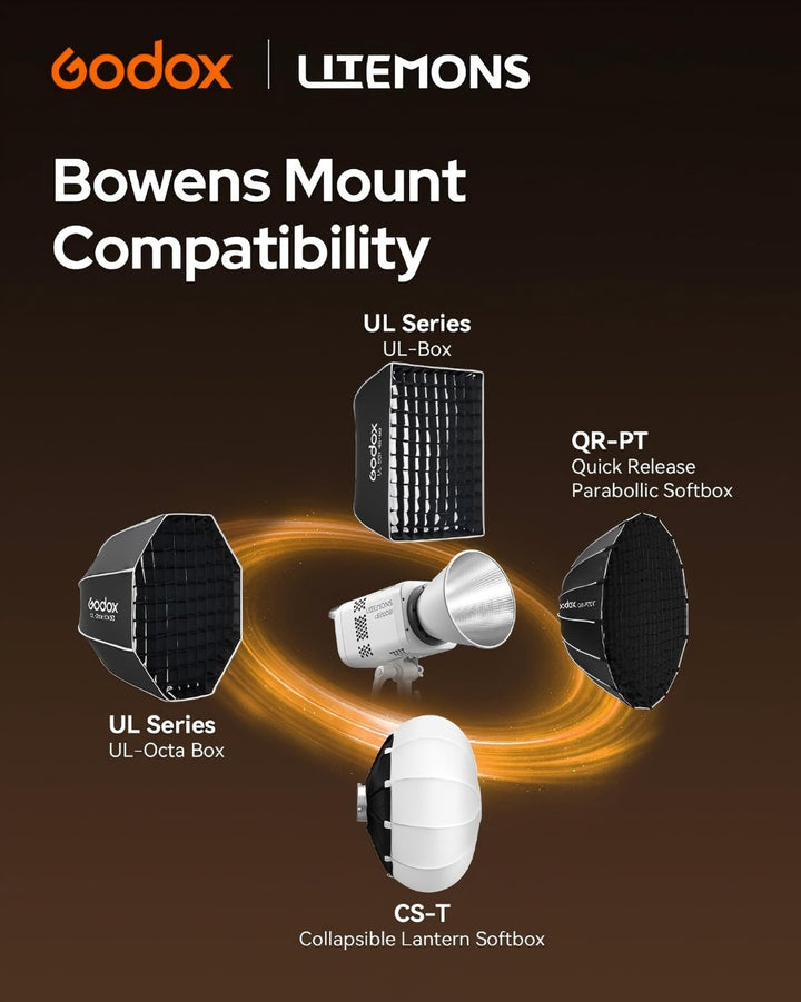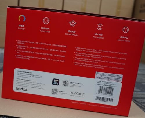 Godox LE200Bi バイカラー LED ライト、220W GODOX ライト全金属製ボディ、CRI/TLCI98+、CCT 2800K-6500K/11 FX エフェクト/Bowens マウント/静音ファン、アプリ/DMX/NFC/CRMX コントロール、ビデオ、ストリーミング、スタジオ用