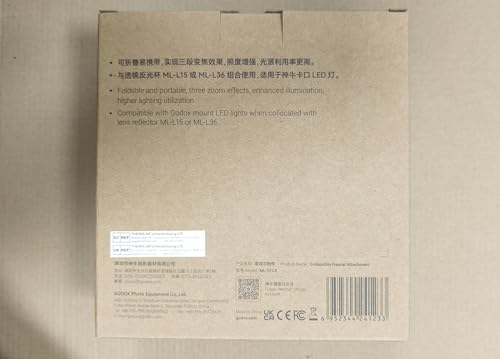 - ML シリーズ ライトとの互換性 Godox ML シリーズ LED ライト用に最適化されたこのアクセサリは、ML-L15 (ML100 シリーズに付属) または ML-L36 (別売) にシームレスに取り付けられ、出力と方向制御を強化します。