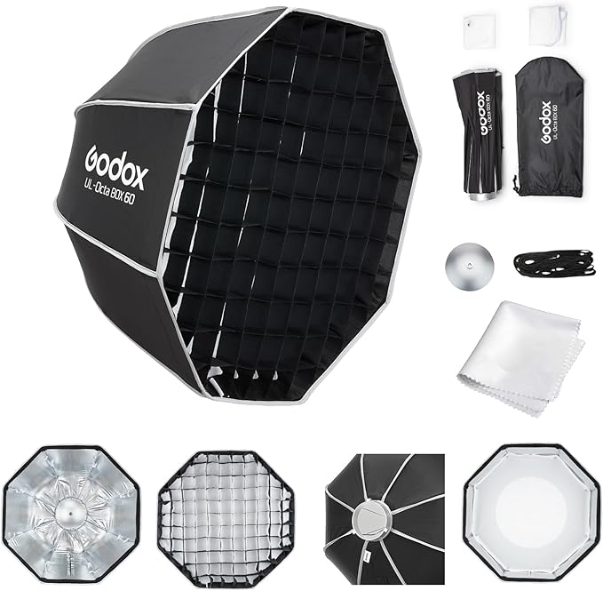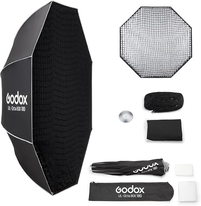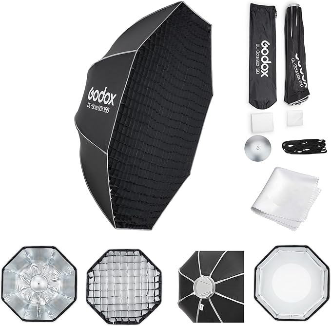 - 取り外し可能なディフューザーとグリッド:Godoxクイックリリースアンブレラソフトボックスには、取り外し可能なフロントディフューザーとインナーディフューザーが付属しており、光量を調整できます。さらに精密な調整が必要な場合は、布製グリッドを使用して、撮影に最適な雰囲気を作り出すことができます。ソフトボックスを単なるソフトライト光源以上の存在へと変貌させましょう。