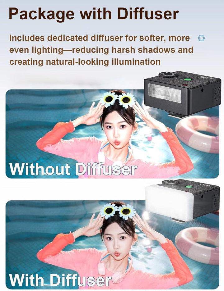 7 Adjustable Power Levels๏ผFully Manual Operation: Godox IM30 is a manual flash, you will need to set the correct power setting and there's NO TTL. The IM30 mini flash is front-facing only, it is fixed and the angle cannot be adjusted, so it can't be used for bounce settings. The GODOX iM30 Flash offers 7 power levels (1/64~1/1) to suit any scene or lighting condition. Whether you need subtle fill light or full brightness, easily adjust the flash to achieve your desired lighting effect.