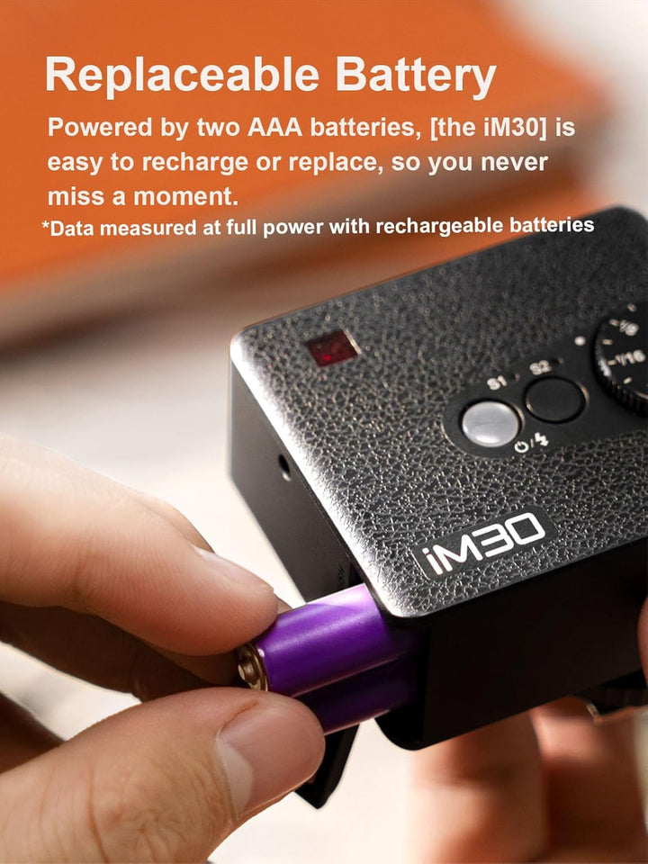Natural Lighting for Enhanced Photos With a guide number of 15 and a color temperature of 6500Kยฑ200K, the GODOX iM30 camera flash produces bright, natural lighting that enhances your shots. The S1/S2 optical control ensures reliable, high-quality performance, making it a must-have portable light for photography. godox im30 mini flash ALWAYS WORKS