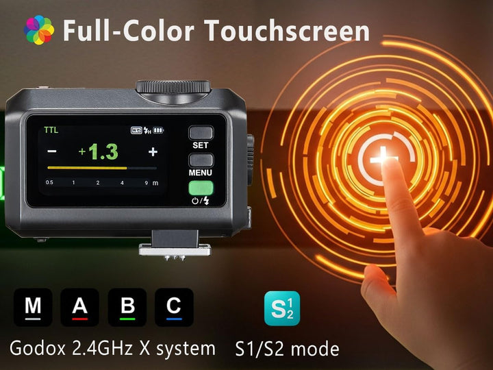 Control is at your fingertips. The godox it30pro f ttl mini flash boasts a vibrant full-color touchscreen for swift, intuitive adjustments. Prefer a more classic feel? A tactile rotary dial offers precision control for fine-tuning your output. This dual interface adapts to your shooting style, ensuring seamless operation.
