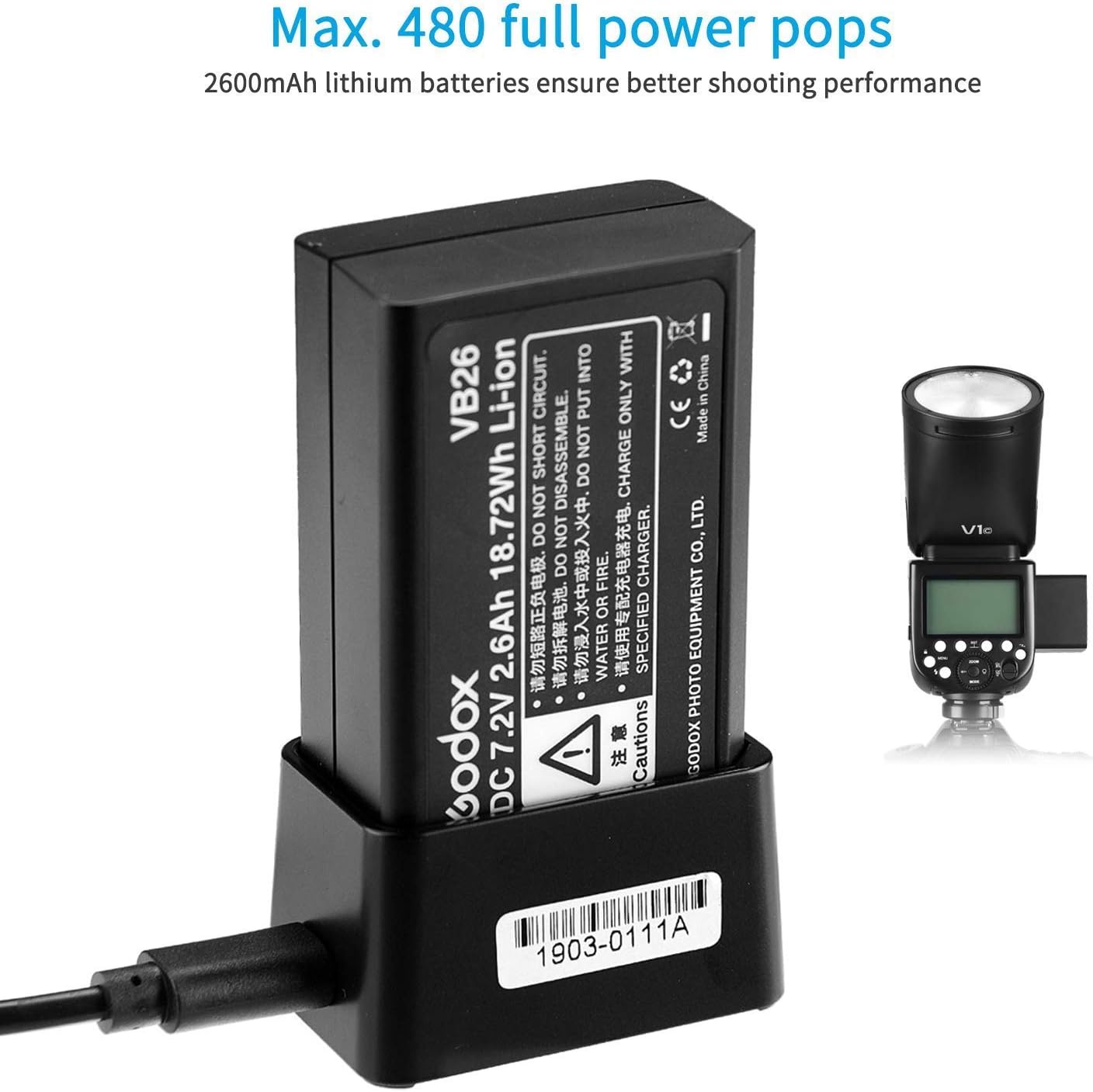Godox V1 Flash Cameras, 1/8000s HSS TTL Speedlite, 480 Full Power Shots, 1.5s Recycle Time, 76Ws 2600mAh Battery, 10-Level LED Lamp, 2.4G TTL Round Head Flash