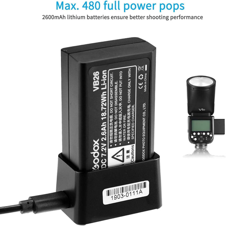 POWERFUL BATTERY: Equipped with a high-capacity 7.2V 2600mAh Li-ion battery, supporting up to 480 full-power flashes, 1.5s recycle time, and flash durations from 1/300 to 1/20,000s.